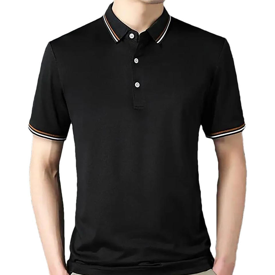 เสื้อโปโลผ้าไหมคุณภาพสูงผ้าสแปนเด็กซ์กันรอยยับสีเข้มและสี6XL ขนาดพร้อมปลอกคลาสสิกเข้ารูป