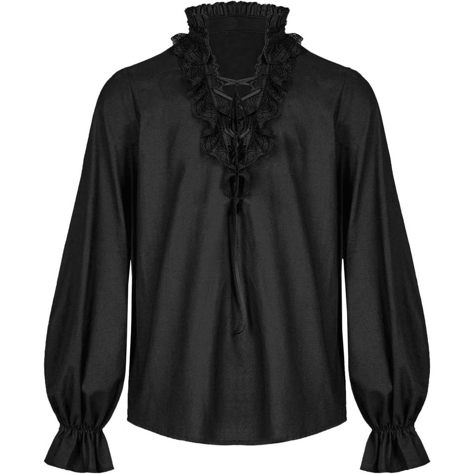 2025เครื่องแต่งกายสไตล์สตีมพังค์วิคตอเรียของผู้ชายเสื้อโจรสลัดยุคฟื้นฟูศิลปวิทยายุคกลางลายลูกไม้สำหรับแวมไพร์กวีสตีมพังก์ที่สวยงาม