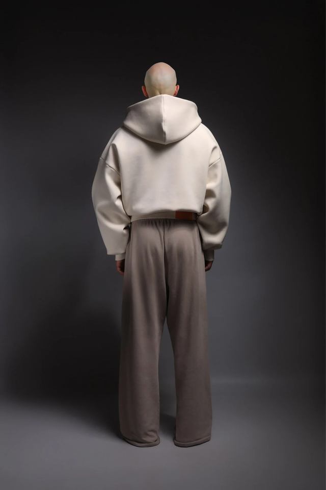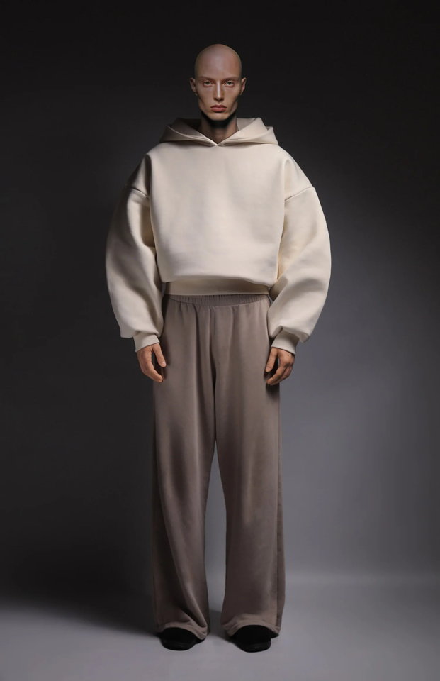 2025เสื้อฮู้ดตัวครอปของผู้ชายผ้าฝ้าย100% 700gsm บ็อกซี่สีพื้นใส่ได้พอดีไม่มีสายฮู้ดใหญ่โอเวอร์ไซส์
