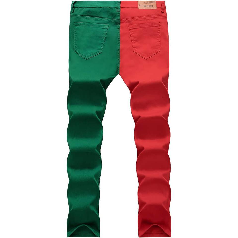 2025กางเกงยีนส์ผู้ชายเอวสูงทรงตรงบูททรงตรงรัดรูปผ้ายืดใส่สบายสีเขียวแดงเข้มทรงหลวม