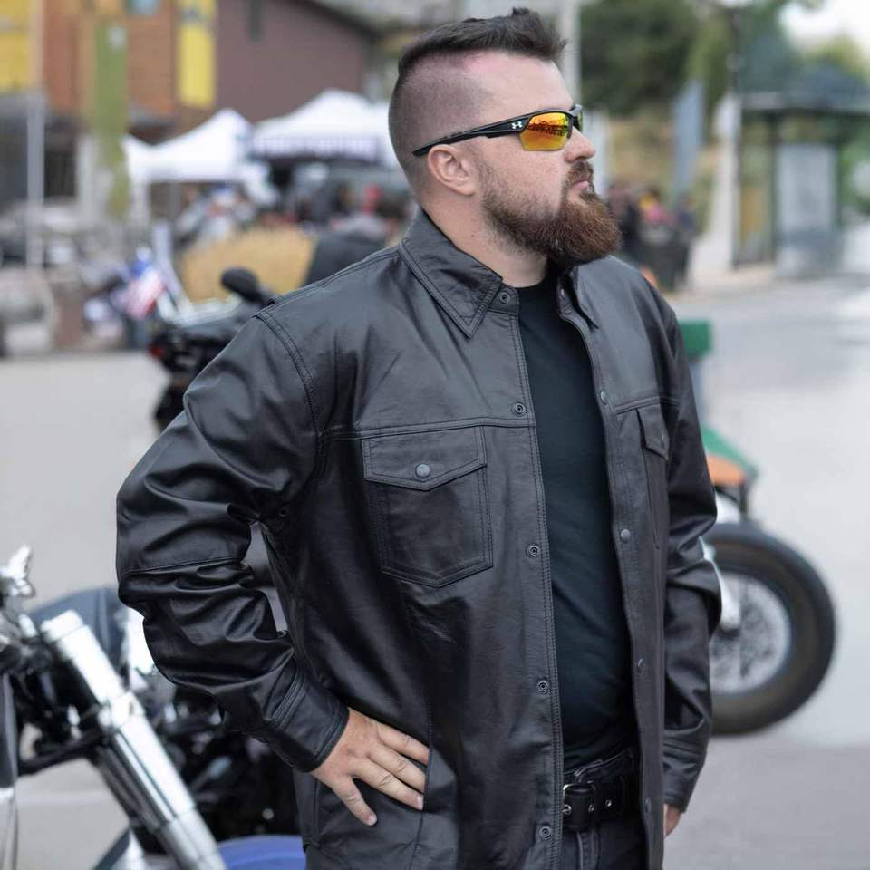 เสื้อหนังสไตล์ไบค์เกอร์ลำลองน้ำหนักเบาสำหรับผู้ชาย ปี 2025 สีดำ รุ่น LKM1600-สำหรับใส่ขี่มอเตอร์ไซค์และแข่งรถ