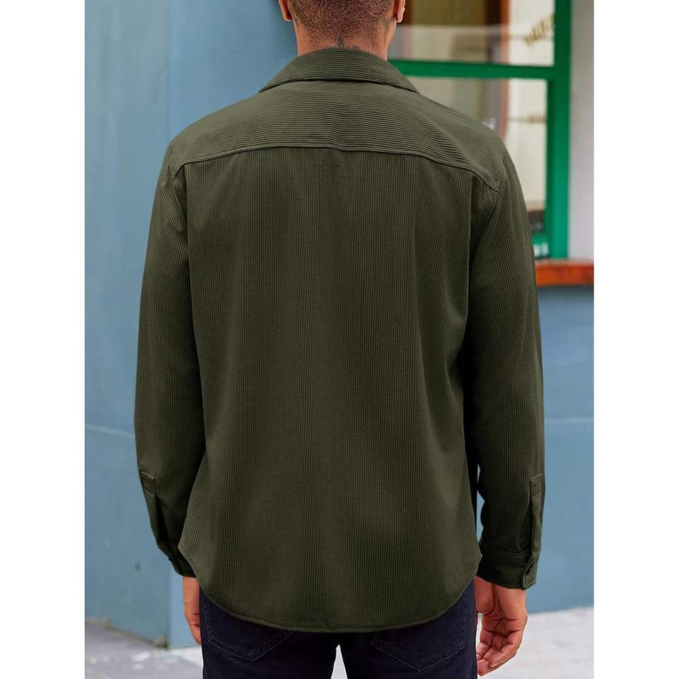 เสื้อแจ็คเก็ตคอร์ดูรอยผู้ชายแบบมีกระดุม รุ่นน้ำหนักเบา ปี 2025 แขนยาว สไตล์ลำลอง มีกระเป๋าแบบมีฝาปิด รุ่น B0D2WBD3GJ