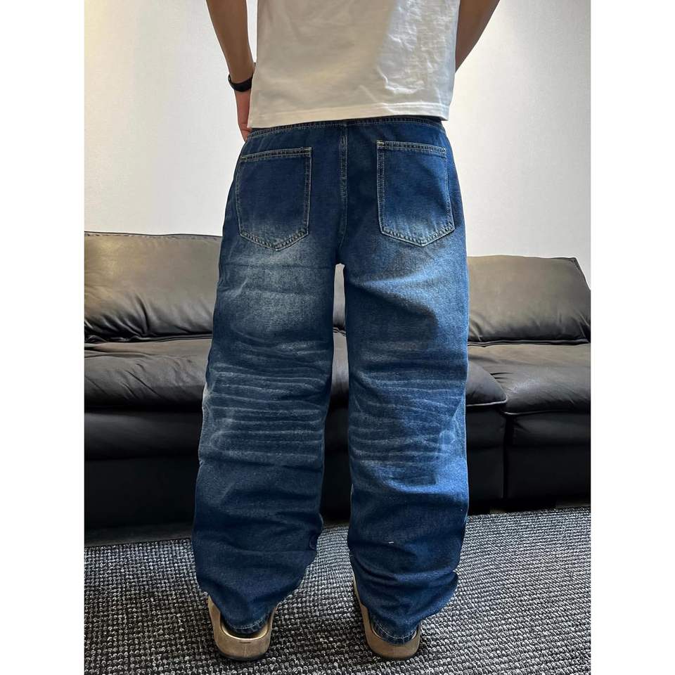 กางเกงยีนส์ขาตรงน้ำหนักเบาของผู้ชาย, กางเกงยีนส์วินเทจ2025แต่งหมุดย้ำสไตล์ฮิปฮอปทรงหลวมปกติสำหรับฤดูร้อนฤดูใบไม้ผลิ