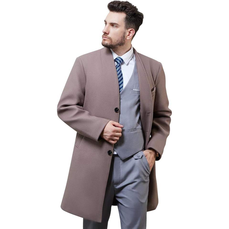 2025เทรนช์โค้ทขนสัตว์ตัวยาวสำหรับผู้ชายเสื้อคลุมกันหนาวแบบบางพอดีตัวพร้อมกระดุมตกแต่งเปลือกแคชเมียร์และไส้ผ้าฝ้าย