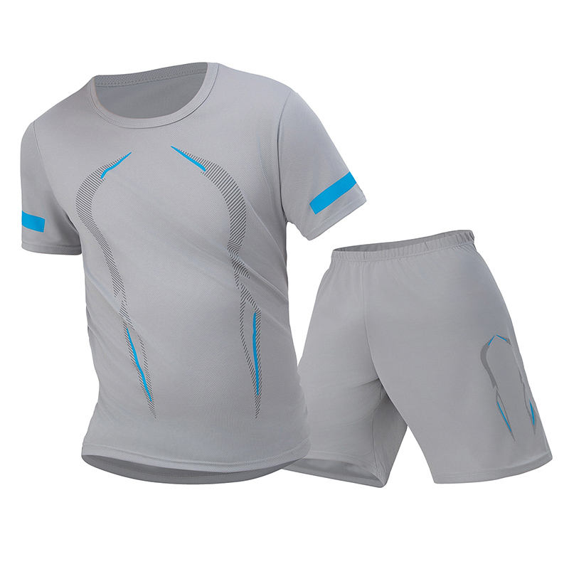 2025ชุดกีฬาผ้าตาข่ายระบายอากาศได้ดีแห้งเร็วของผู้ชายกางเกงขาสั้นแขนสั้นแบบหลวมสำหรับวิ่งฟิตเนสปีนเขาลำลอง