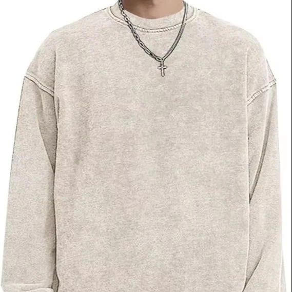 เสื้อกันหนาวแขนยาวผ้าคอตตอนสำหรับผู้ชาย, เสื้อสเวตเตอร์แขนยาวผ้าฮิปฮอปสตรีทแวร์ผ้าพลาสไซส์ใหญ่พิเศษสำหรับฤดูใบไม้ร่วง2025