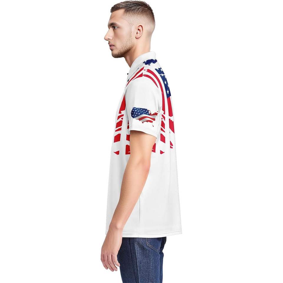 เสื้อโปโลผู้ชายแบบ2025ลายธงชาติอเมริกาเสื้อโปโลแขนสั้นผ้ายืดสีพื้นเสื้อใส่ทำงานสีดำสำหรับใส่เล่นกอล์ฟ