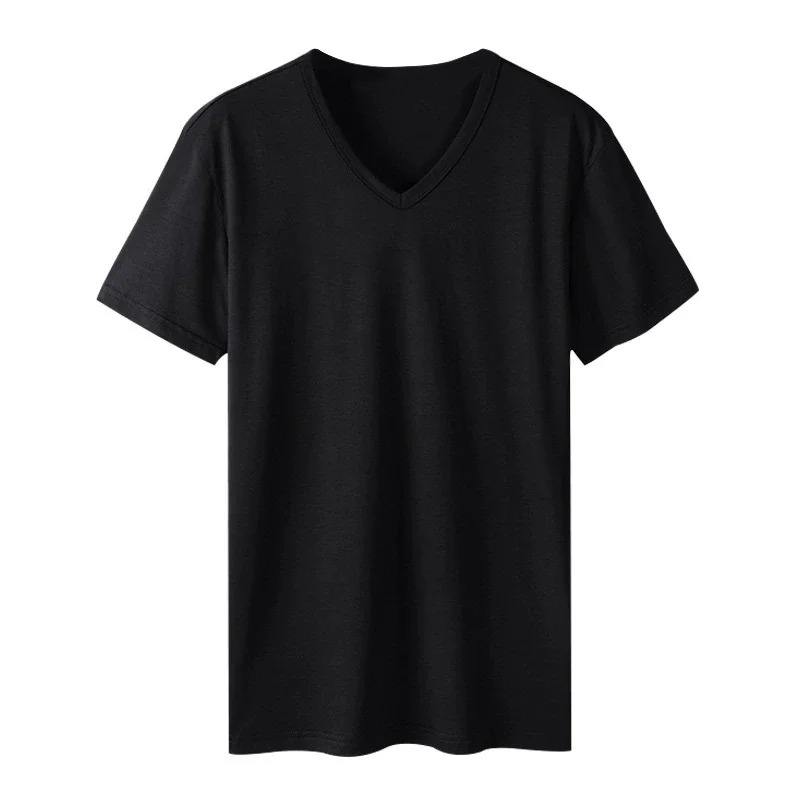 เสื้อยืดผู้ชายแขนสั้นทรงหลวม ระบายอากาศได้ดี ไซส์ใหญ่ รุ่นปี 2025 ผ้าบาง สีพื้น คอวี ผ้าฝ้าย 100% สำหรับฤดูร้อน