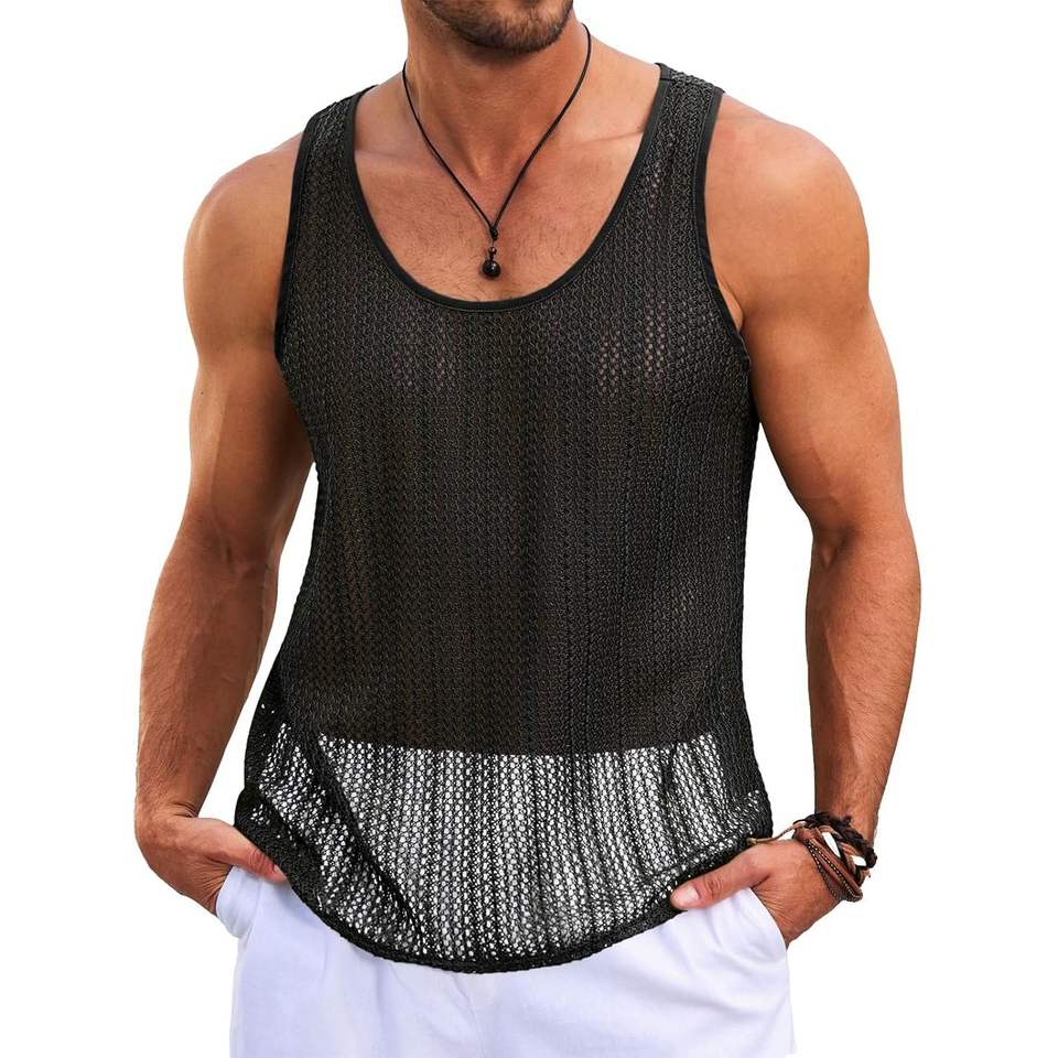 2025เสื้อกล้ามผู้ชายแขนกุดถักโครเชต์เสื้อยืดลายทะลวงมีฮู้ด XL เสื้อยิมมีฮู้ดสำหรับฤดูร้อนชายหาดสไตล์ฮิปปี้ Vibe