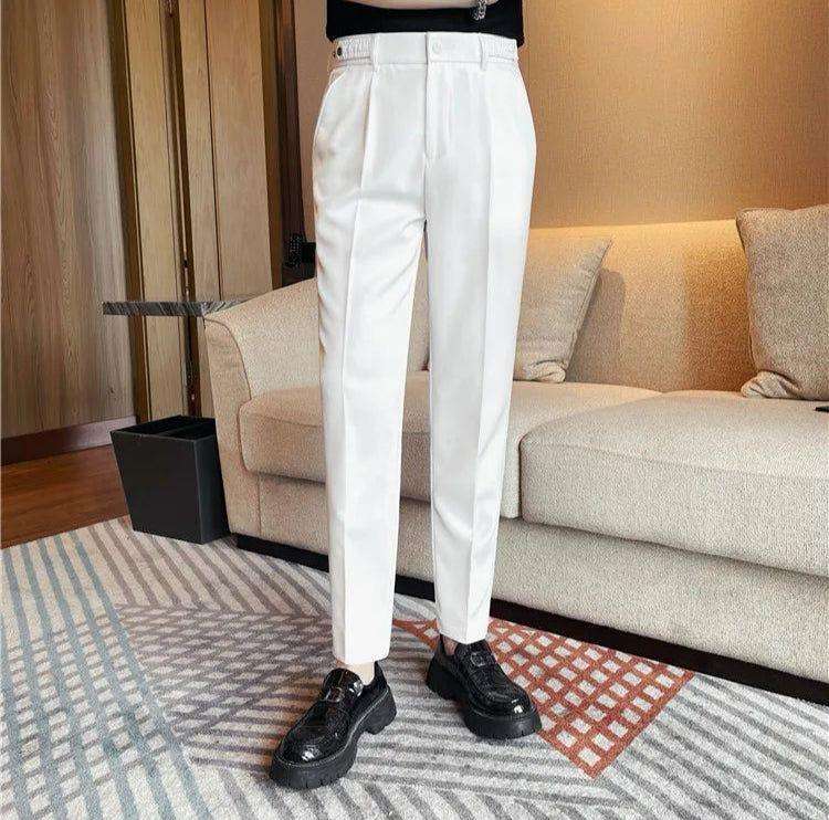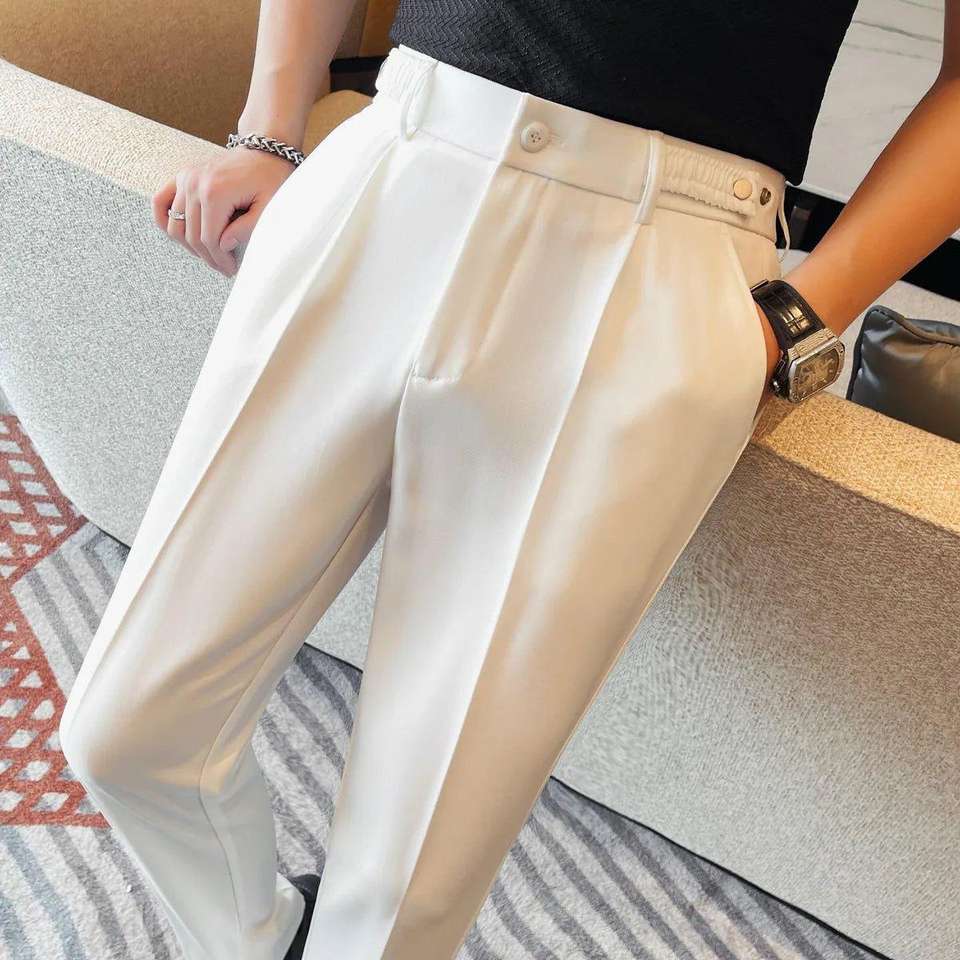 2025กางเกงทำงานทรงสลิมฟิตสำหรับผู้ชายกางเกงตรงเอวกลางเอวยืดได้สวมใส่สบายระบายอากาศได้ดี
