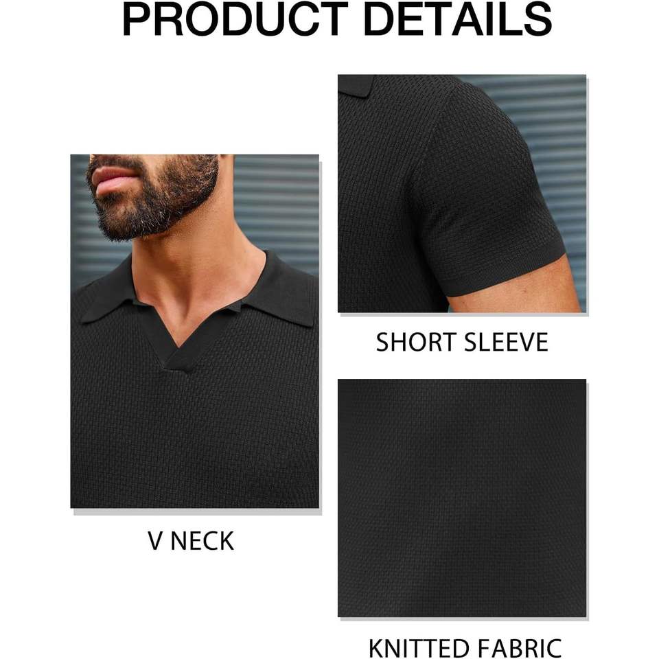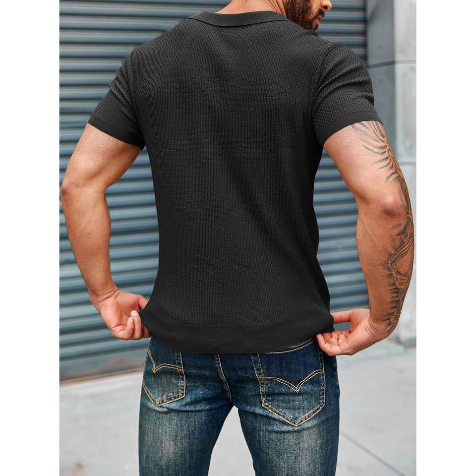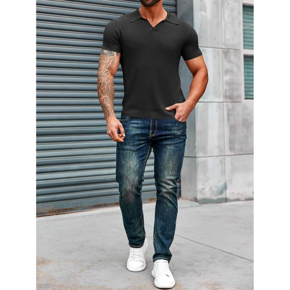 2025เสื้อโปโลผู้ชายแนววินเทจผ้าถักเสื้อยืดลำลองคอวีแขนสั้นกล้ามเนื้อ