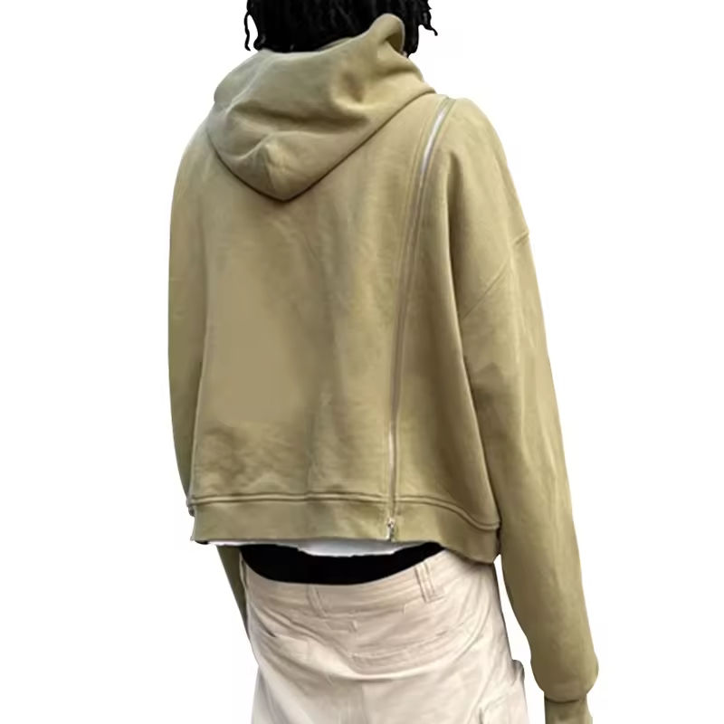 เสื้อฮู้ดซิปผู้ชายปี 2025 เนื้อผ้านุ่มสบาย ทรงครอป คุณภาพสูง สไตล์สตรีทแวร์ กันน้ำได้เต็มรูปแบบ รับสั่งพิมพ์ลายปัก สีพื้น
