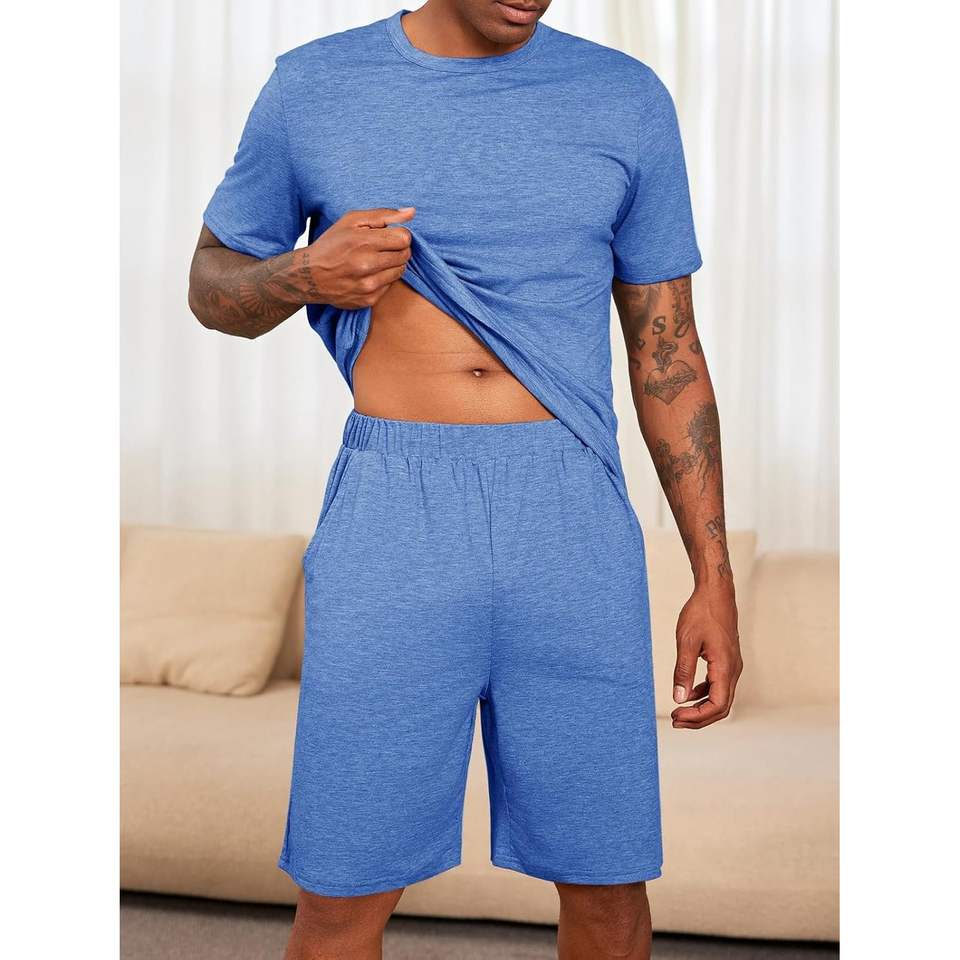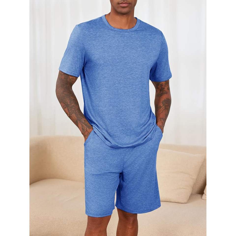 2025ชุดนอนลำลอง2ชิ้นผ้าไหมและโมดอล, ชุดนอนแขนสั้นเสื้อยืดและกางเกงขาสั้น XL สำหรับผู้ชายใส่ในฤดูร้อนสำหรับใส่ในเลานจ์