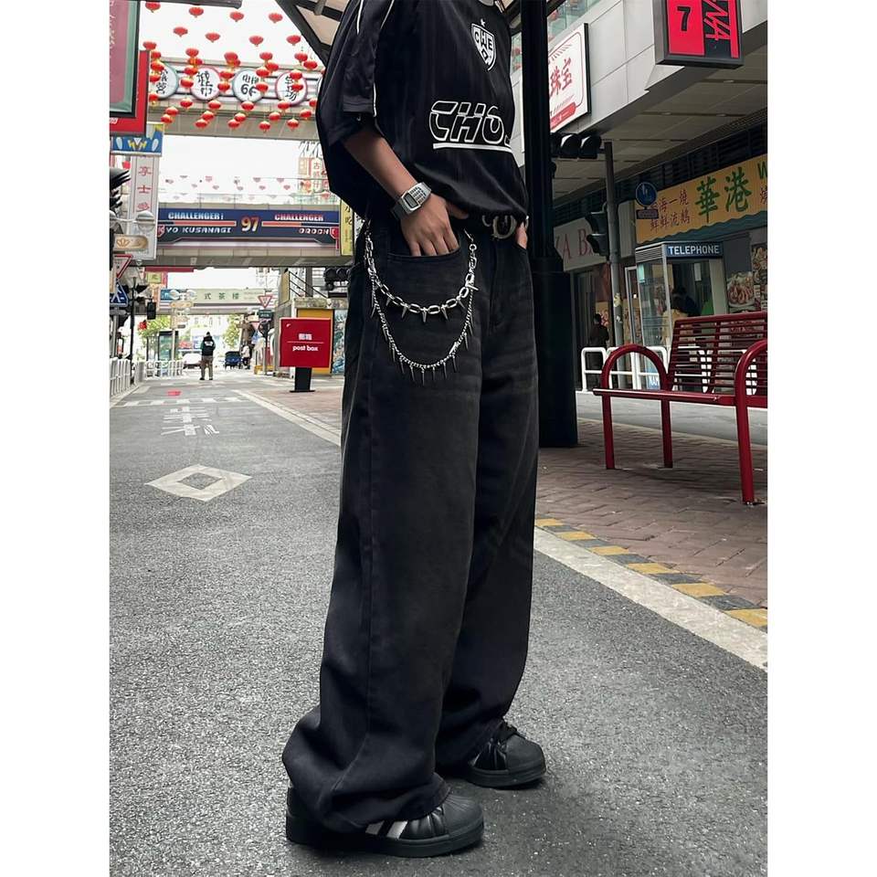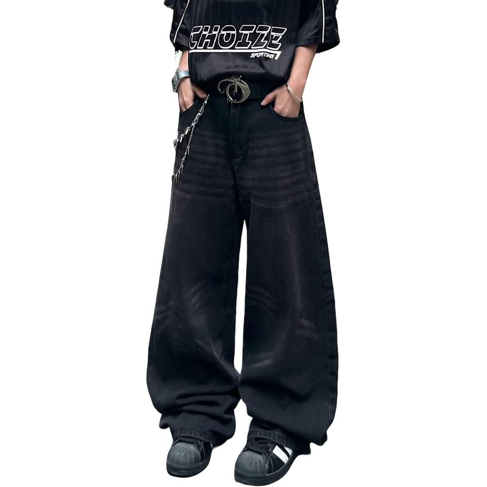 2025กางเกงยีนส์ขาบานกว้างพิเศษของผู้ชายกางเกงยีนส์สีดำประกายด้วยหินสีตรงแนวสตรีทฮิปฮอปเล่นสเก็ตกางเกงยีนส์ได้รับแรงบันดาลใจจาก Y2K