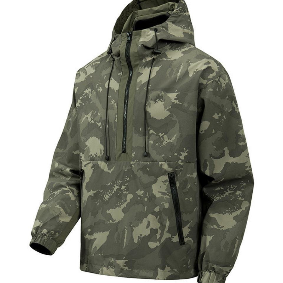 เสื้อฮู้ดดี้เทคแวร์ลายพรางผู้ชาย ปี 2025 แบบซิปครึ่งตัว - กันน้ำ ปรับได้ สไตล์สตรีทแวร์ แจ็คเก็ตพรางลายสำหรับฤดูใบไม้ร่วง