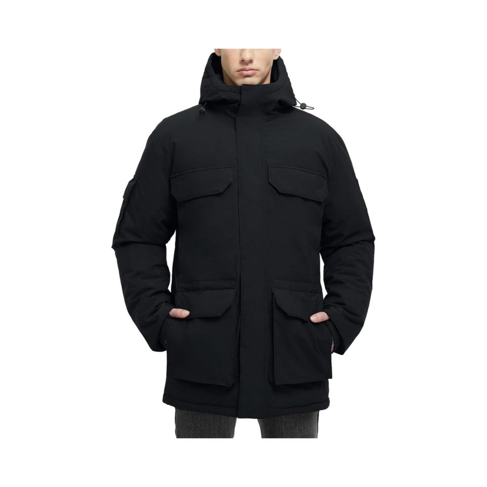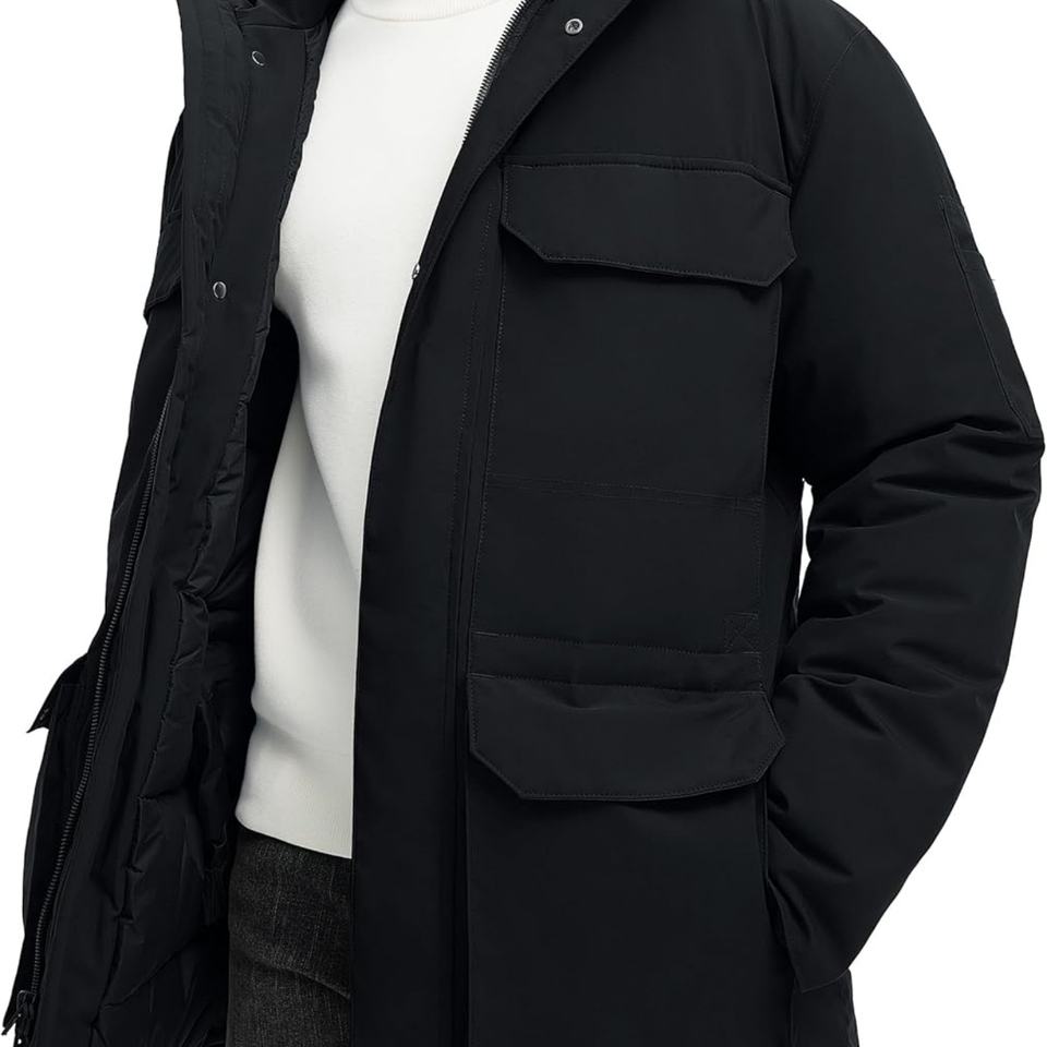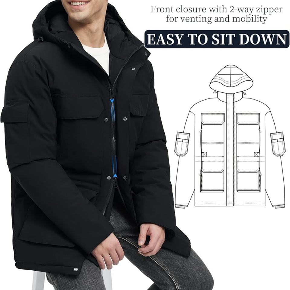 2025 Men's Techwear Waterproof Long Down Jacket - Warm Insulated 90% Duck Down Hooded Winter Cold Weather Parka