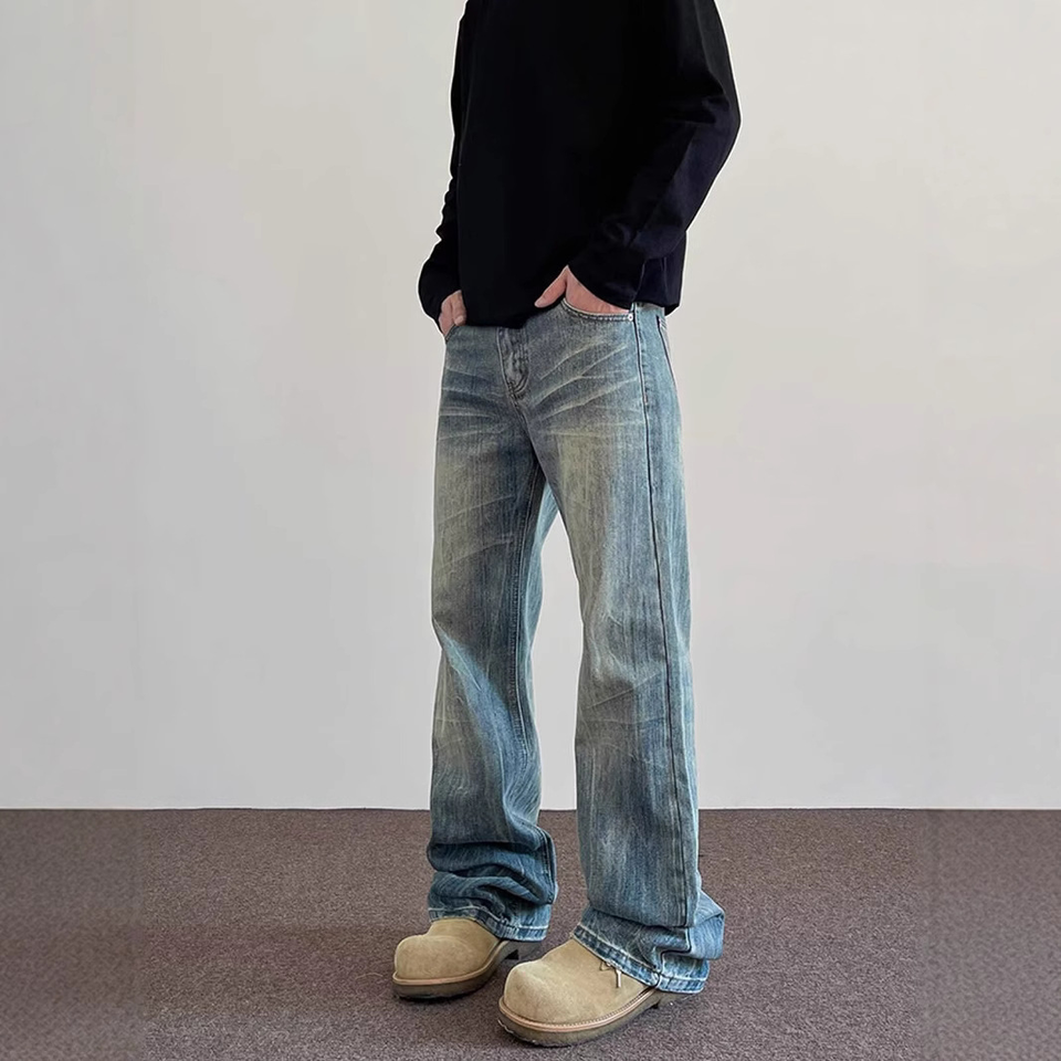 กางเกงผ้ายีนส์ขาตรงสไตล์วินเทจสำหรับผู้ชายทันสมัยสำหรับฤดูร้อนผ้าทอปานกลางเอวซักได้