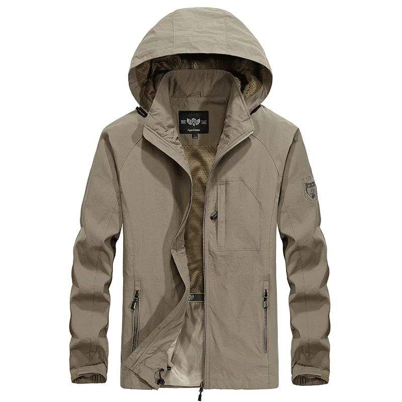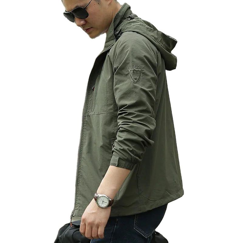 เสื้อกันลมคอตั้งไซส์ใหญ่สำหรับผู้ชาย, เสื้อแจ็คเก็ตกันน้ำมีซิประบายอากาศได้ดีสำหรับฤดูใบไม้ผลิฤดูใบไม้ร่วงกิจกรรมกลางแจ้งผ้าทอ
