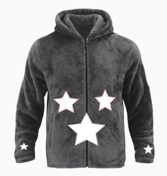 2025แจ็คเก็ตผ้าฟลีซมีฮู้ดผ้ากำมะหยี่สองด้านสำหรับฤดูหนาวของผู้ชายแจ็คเก็ตลำลองมีป้ายธงอบอุ่นและทันสมัย