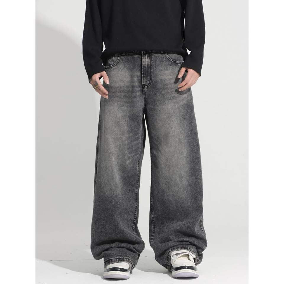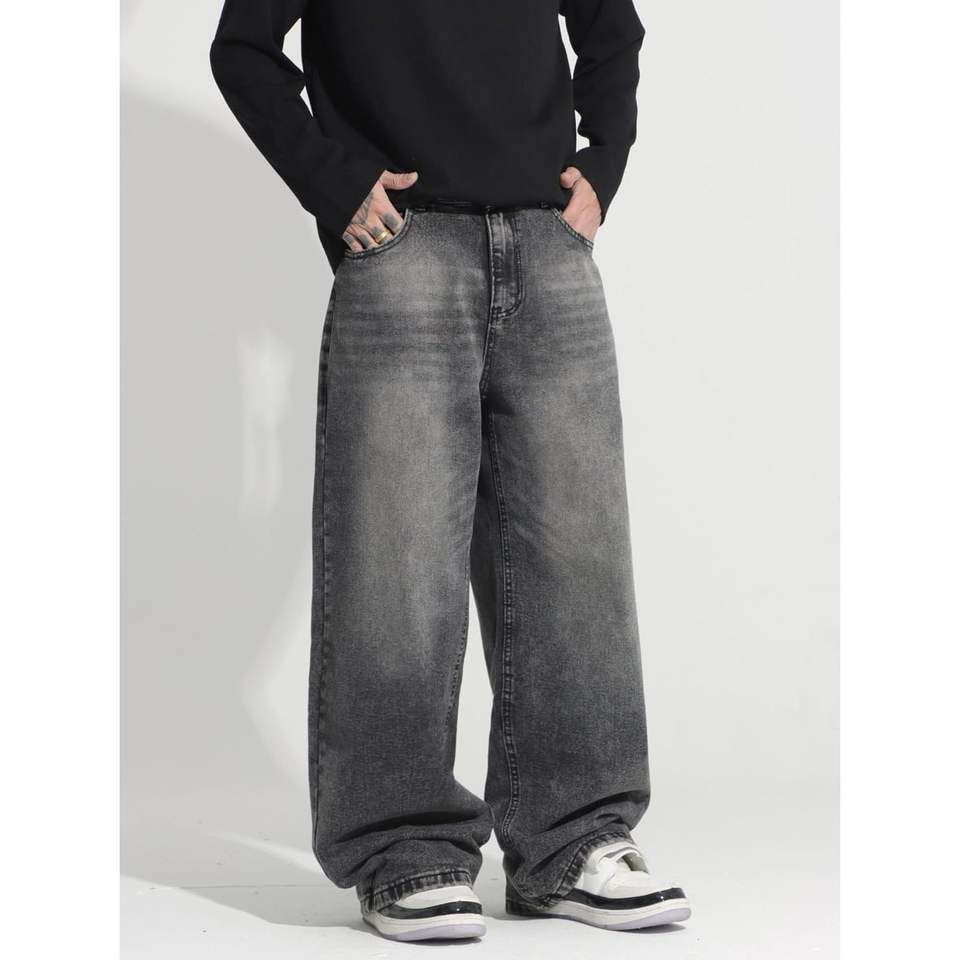 2025กางเกงยีนส์ขาบานผู้ชาย, กางเกงยีนส์ทรงหลวมแฟชั่นลำลอง Y2K กางเกงผ้าเดนิม3D ถักเย็บปะติดปะต่อกันหมุดสำหรับใส่ทำงาน