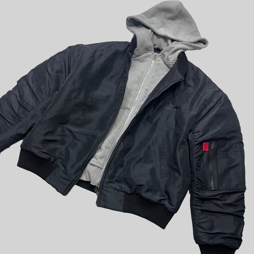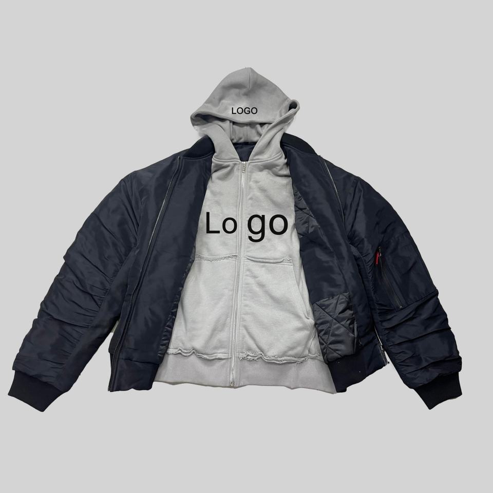 แจ็คเก็ตนักบินผู้ชายสไตล์ Y2K หรูหรา ปี 2025 แบบซิปคู่ แจ็คเก็ตสตรีทแวร์ลำลองแบบสองด้านสำหรับกิจกรรมกลางแจ้งในเมือง พร้อมฮู้ด