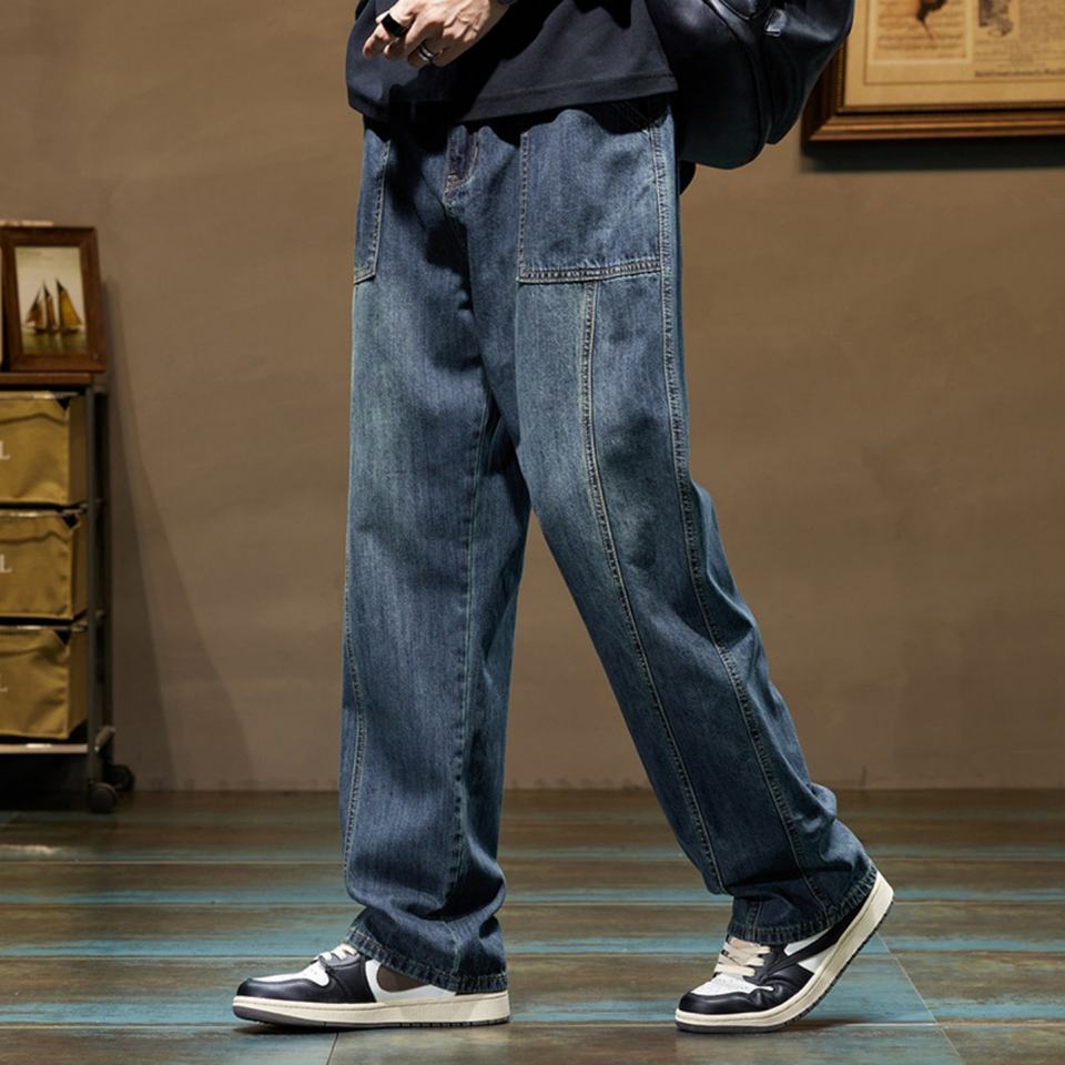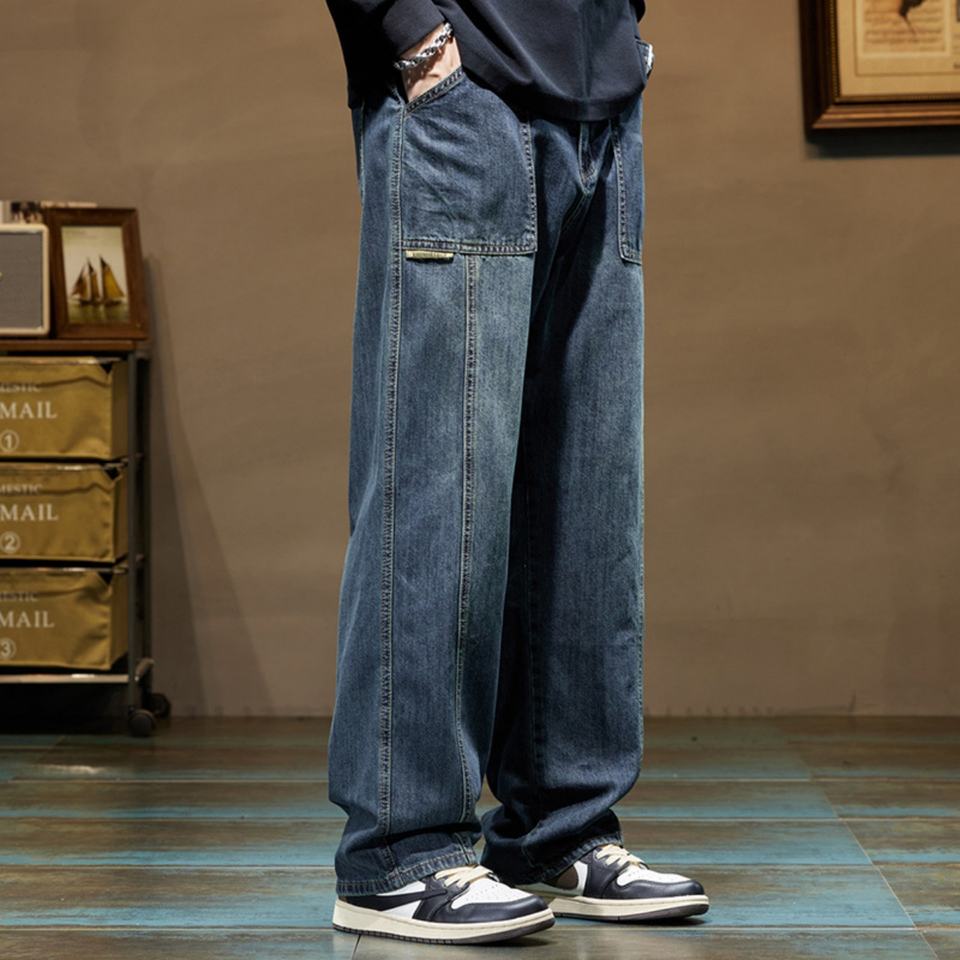 กางเกงยีนส์ทรงตรงสไตล์วินเทจ Y2K สำหรับผู้ชาย ปี 2025 กระเป๋าแบบยูทิลิตี้ ลุคเรโทร ล้างทำสีซีด ขาดๆ แนวสตรีทแวร์ ฮิปฮอป ทรงสูง