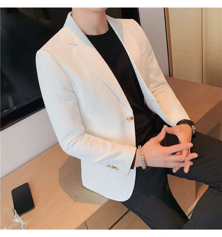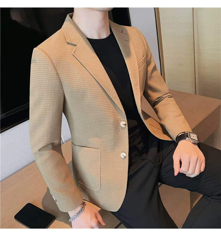 สูทเบลเซอร์ลำลองสลิมฟิตสำหรับผู้ชาย2025เสื้อโค้ทแนวสปอร์ตกระดุมแถวเดียวคอจีนพิมพ์ลายแนวธุรกิจ