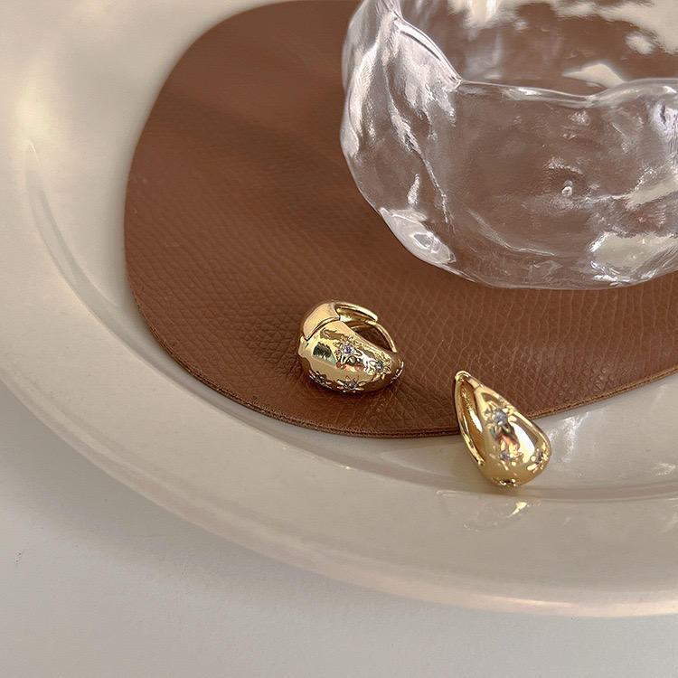 ต่างหูโลหะ2025แบบย้อนยุคต่างหูแบบห่วงต่างหูห่วงชุบทองเซอร์คอนสำหรับสตรีต่างหูแบบห่วง