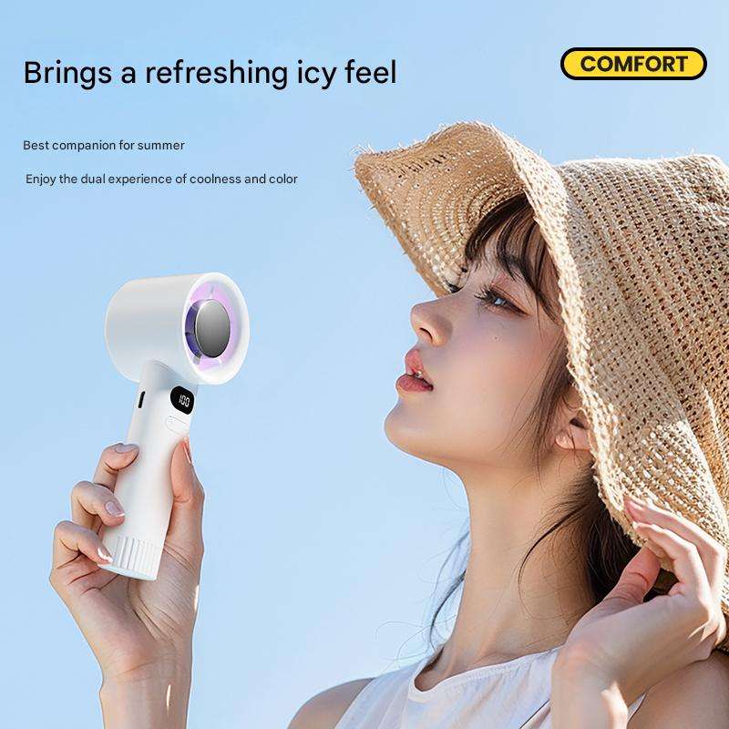 พัดลมมือถือพับได้แบบไร้แปรงถ่าน รุ่น Mini 100-Speed USB ปี 2025 หน้าจอแสดงผล น้ำหนักเบา พกพาสะดวก 100 ระดับความเร็ว ไฟหลากสี สำหรับใช้ในบ้าน
