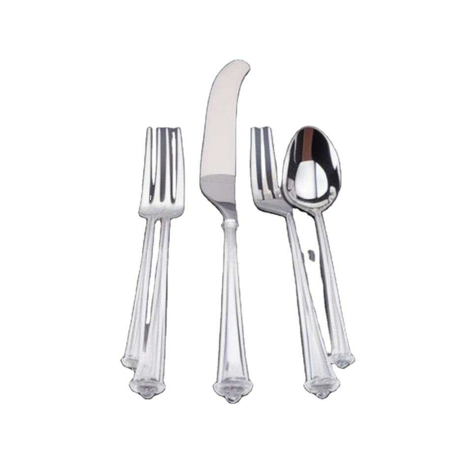 ชุดช้อนส้อมสแตนเลสสตีลแบบคลาสสิก 24 ชิ้น ดีไซน์ยุโรป ปี 2025 ผิวขัดเงาแบบกระจก สำหรับงานแต่งงาน