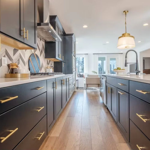 ตู้ครัว MDF เคลือบเงาทนทานต่อน้ำเป็นมิตรต่อสิ่งแวดล้อมดีไซน์ยุโรปทันสมัย2025