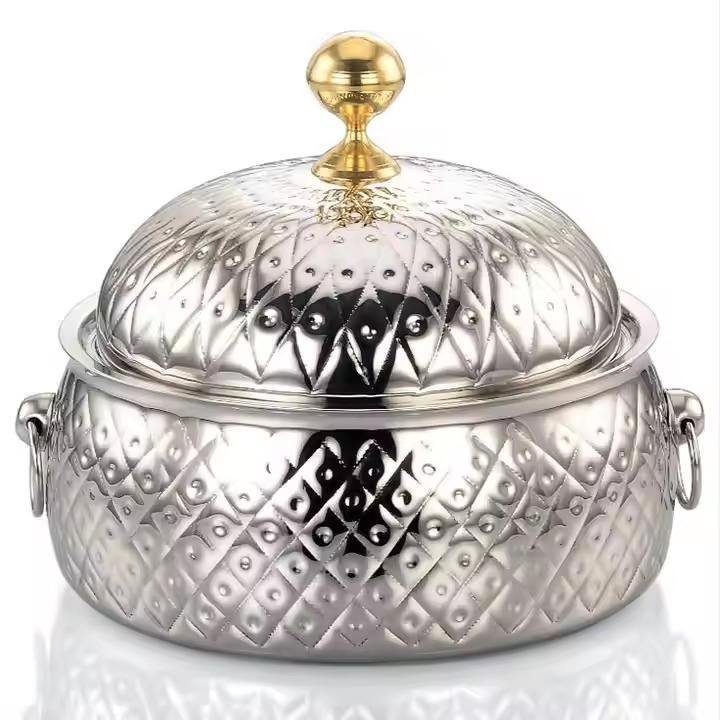 หม้อปรุงอาหารเหล็กลายค้อนของ2025พร้อมลูกบิดฝาโดมและที่จับสีทองสำหรับงานแต่งงานและงานอีเวนต์