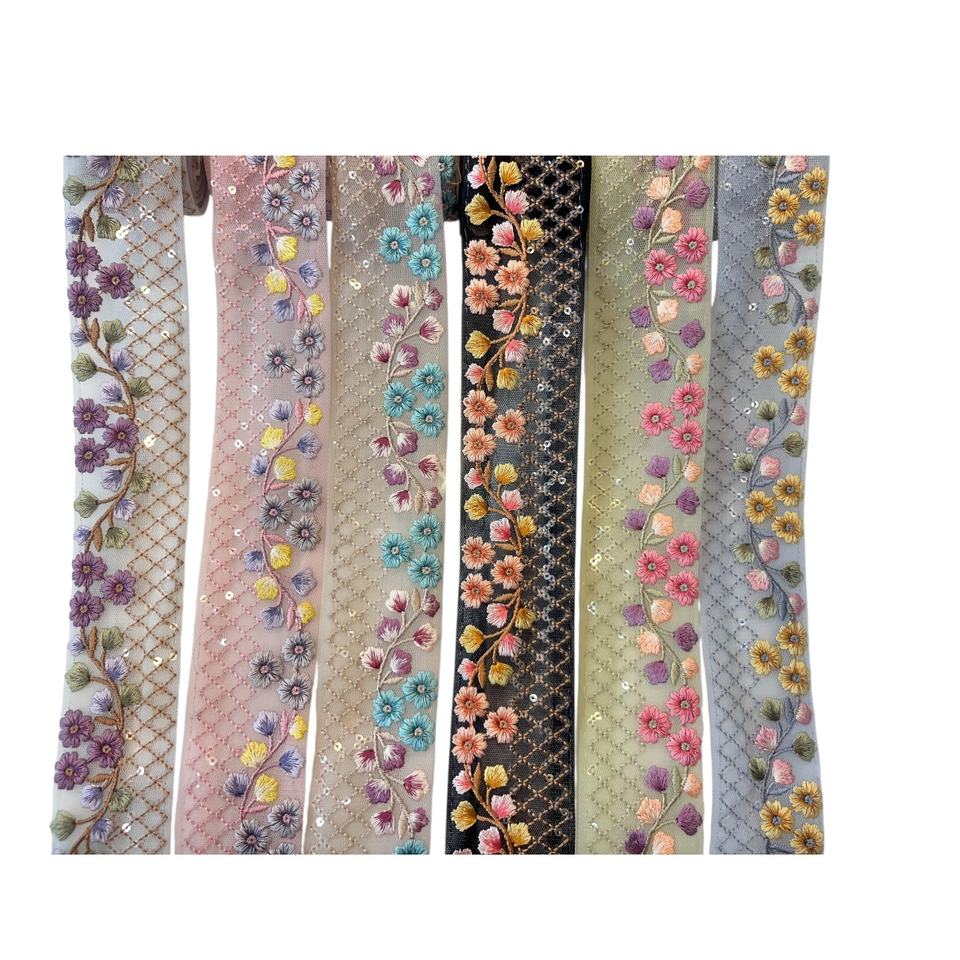 ผ้าลูกไม้ปักลายดอกไม้หลากสี2025สำหรับตกแต่งงานฝีมือและขอบแฟชั่นสำหรับอินเดีย