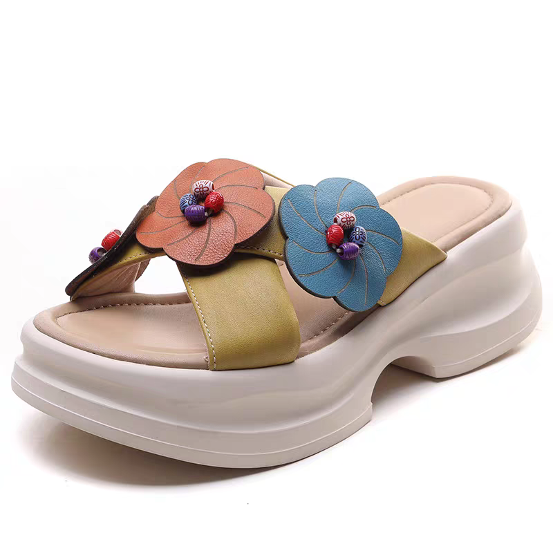 รองเท้าแตะรุ่นใหม่ 881 ปี 2025 และรองเท้าสลิปเปอร์แบบสวมสำหรับผู้หญิง คอลเลคชั่นใหม่รับซัมเมอร์ ลายดอกไม้ ดีไซน์หรูหรา พื้นหนา เหมาะสำหรับใส่ไปชายหาด