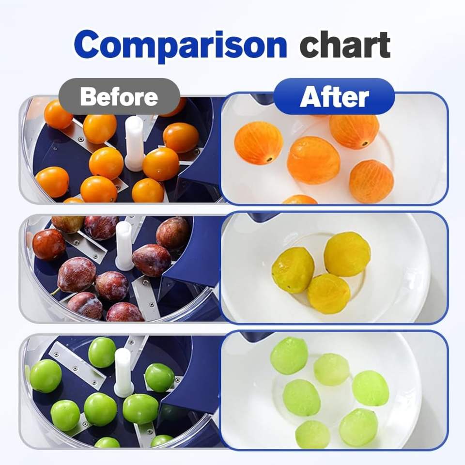 เครื่องปอกผลไม้และผักไฟฟ้าอัตโนมัติขนาดเล็กสำหรับใช้ในครัวเรือน รุ่นใหม่ปี 2025 ใบมีดสแตนเลส ทำความสะอาดง่าย เหมาะสำหรับองุ่น