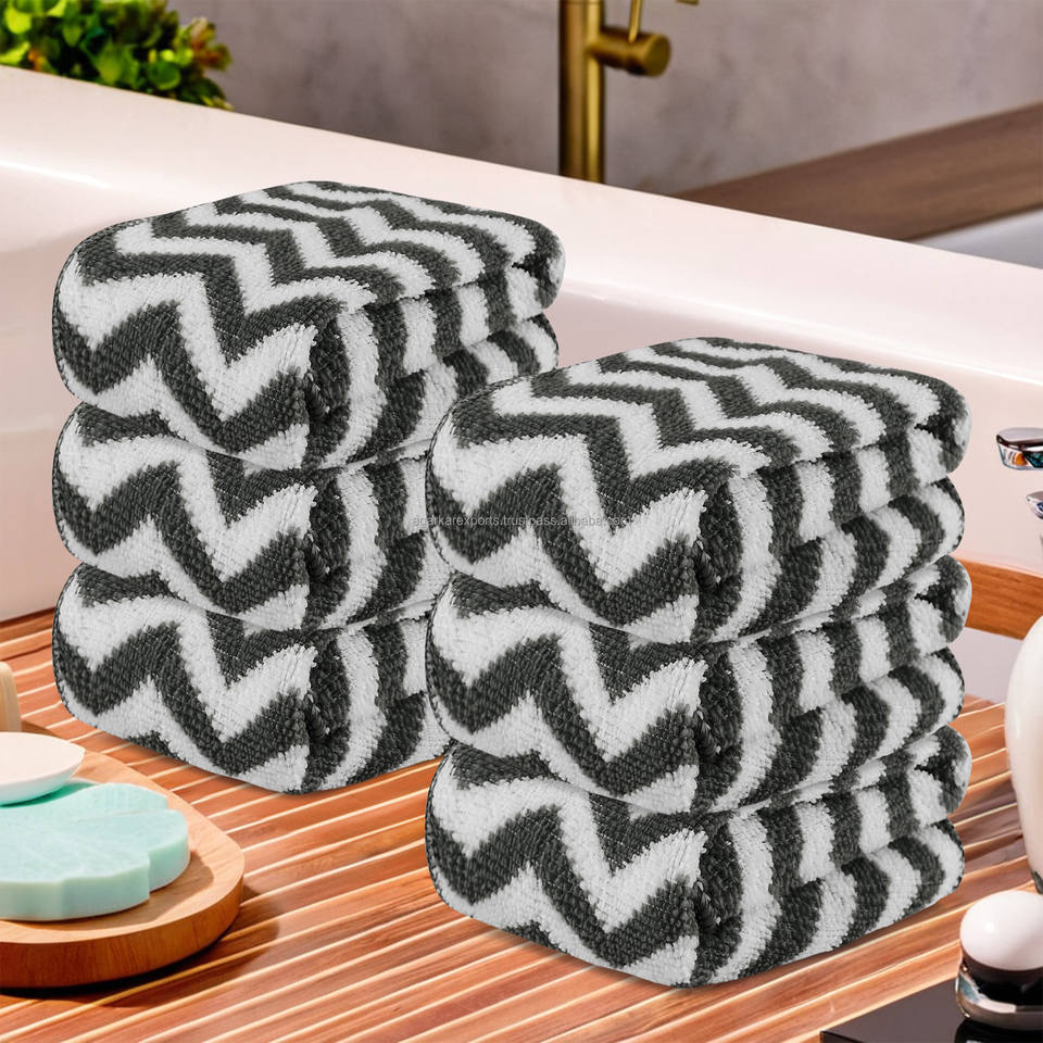 ผ้าเช็ดมือผ้าฝ้ายพิมพ์ลายซิกแซกสำหรับผู้ใหญ่สำหรับล้างหน้าใช้ในบ้านซึมซับเร็ว2025 100% ใหม่