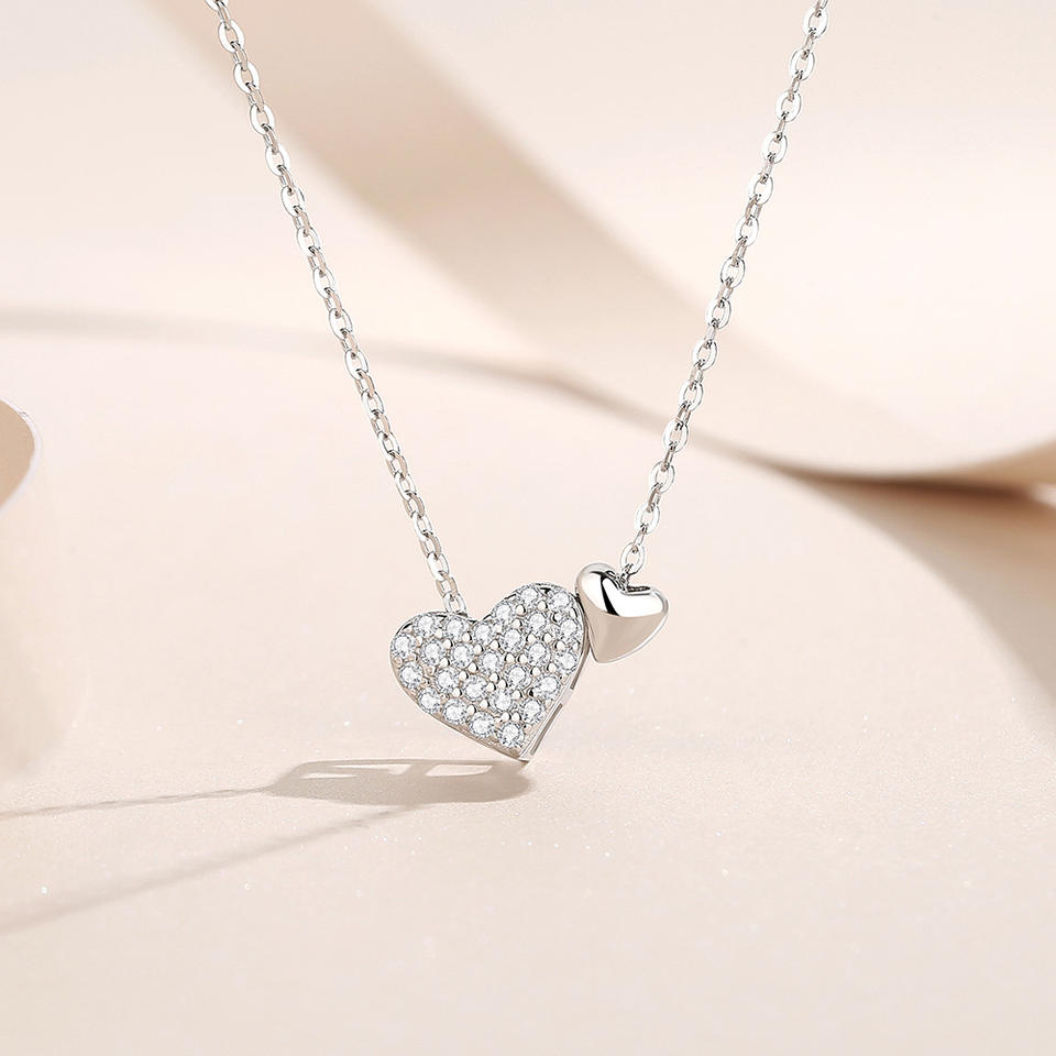 สร้อยคอหัวใจคู่สีเงินสเตอร์ลิง925ใหม่2025ประดับด้วยเพทายแวววาวประดับจี้กระดูกไหปลาร้าโรแมนติกงดงามของผู้หญิงที่สง่างาม