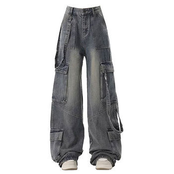 2025ใหม่กางเกงยีนส์คาปรีขากว้างทรงหลวมสไตล์อเมริกันคลาสสิกย้อนยุคกางเกงยีนส์ซักกลางเอวสูง