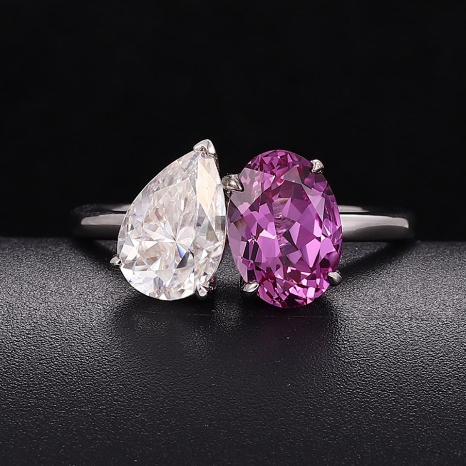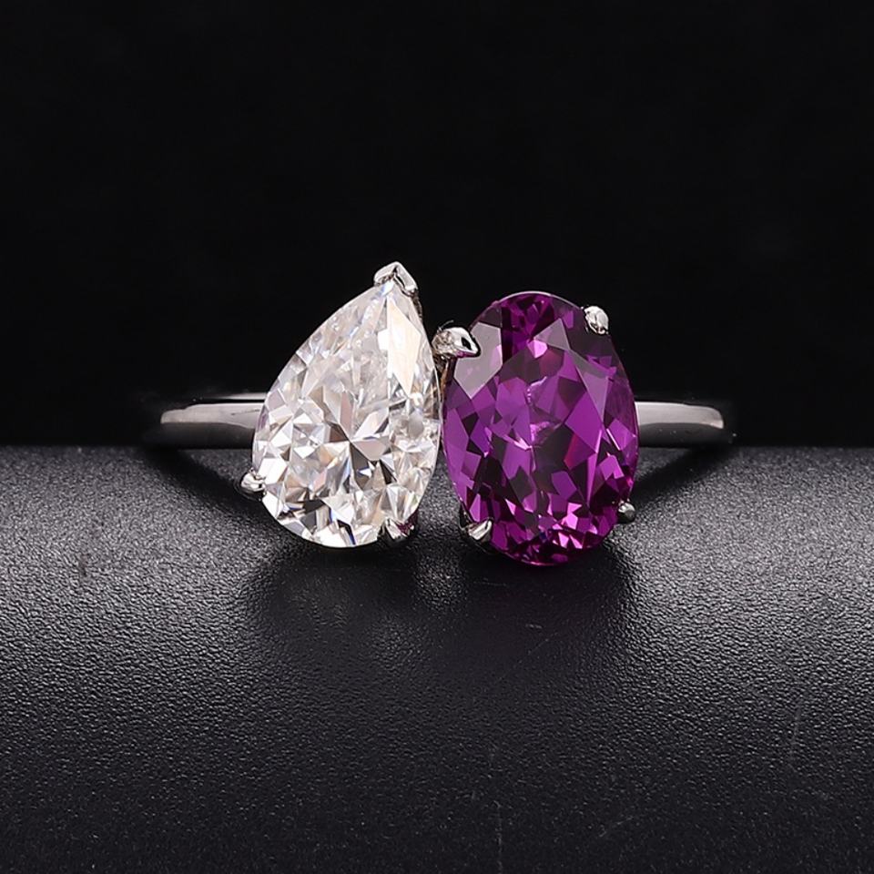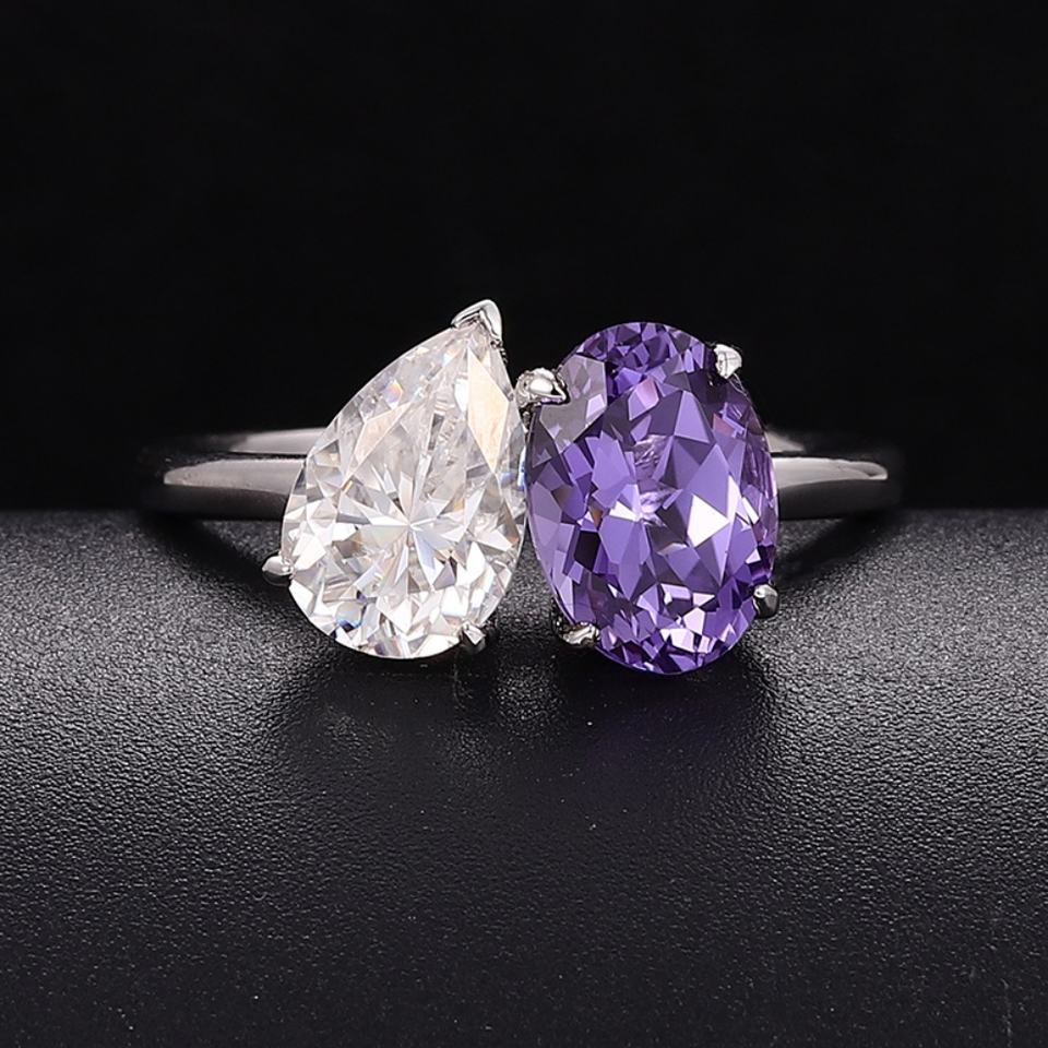 แหวนทองคำขาว 18K ประดับพลอยสีม่วงสังเคราะห์และเพชรโมอิสซาไนต์ งานแฮนด์เมด เครื่องประดับชั้นดีสำหรับผู้หญิง รุ่นใหม่ล่าสุด ปี 2025