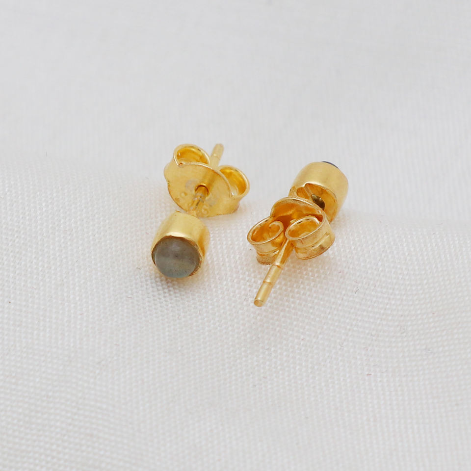 2025ต่างหูเม็ดกลมสีเงิน925มาใหม่พร้อมต่างหูลาบราดอไรต์ธรรมชาติสำหรับผู้หญิง
