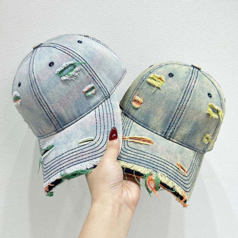 หมวกเบสบอลรุ่นใหม่ปี 2025 หมวกเบสบอลยีนส์สีรุ้งสไตล์วินเทจสำหรับผู้ชายและผู้หญิง หมวกกันแดดแฟชั่น หมวกกีฬาแบบฟอกสี