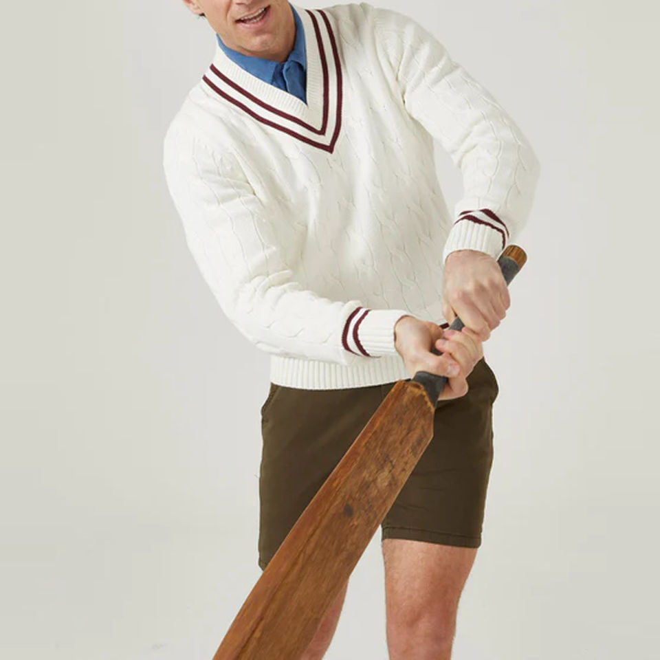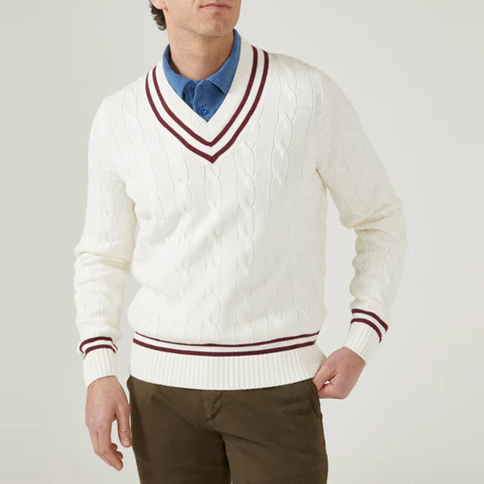 เสื้อสเวตเตอร์ถักไหมพรมสำหรับผู้ชายเสื้อคริกเก็ต100% กันเป็นขนแกะสินค้าใหม่2025