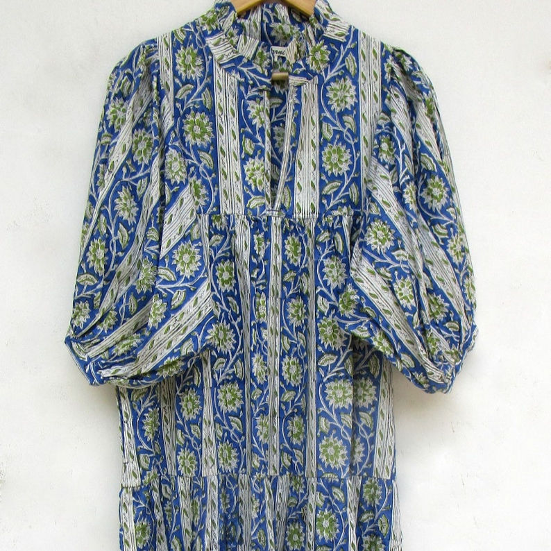 ชุดเดรสแม็กซี่ทรงเอไลน์ผ้าฝ้ายพิมพ์ลายดอกไม้มาใหม่ชุดเดรสยาวแบบอินเดียลำลองของผู้หญิงเครื่องแต่งกายธรรมชาติที่กำลังมาแรงมีกระดุมแบบใหม่2025