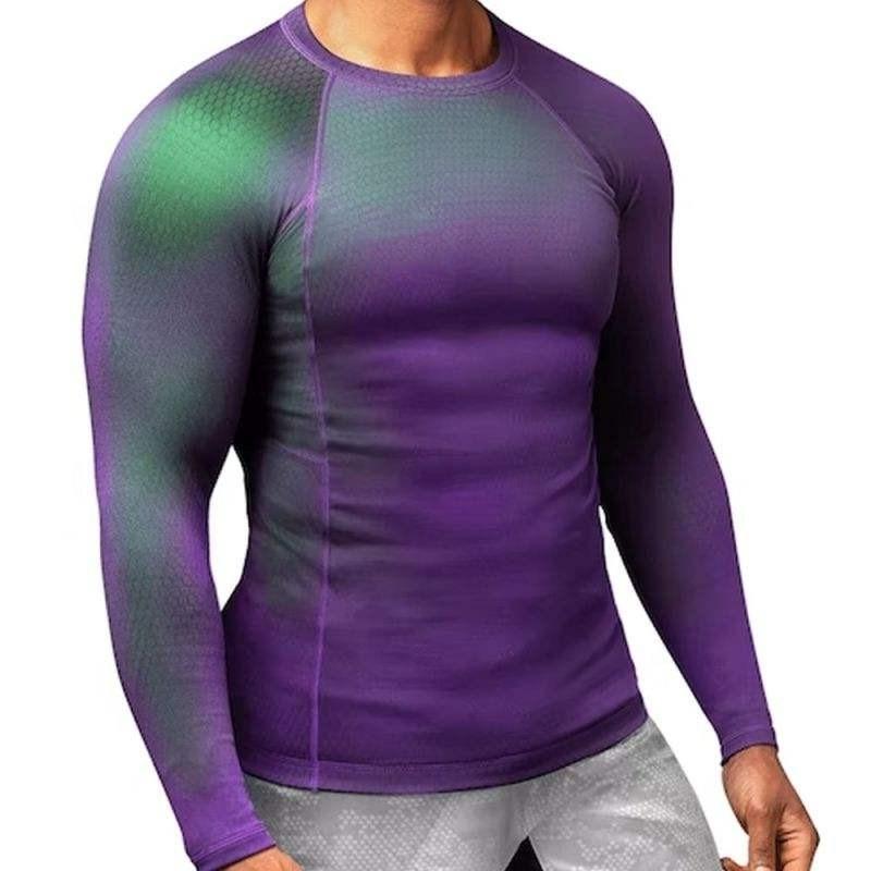 เสื้อรัดรูปสำหรับผู้ชายเสื้อแรชการ์ดแบบระเหิดสำหรับผู้ชายเสื้อแรชการ์ดแบบยาวพิมพ์ลายสินค้ามาใหม่2025