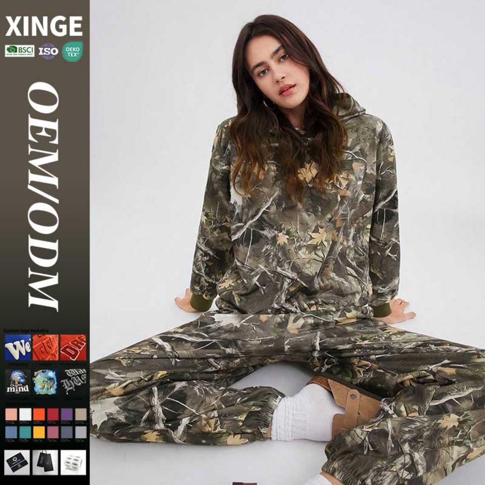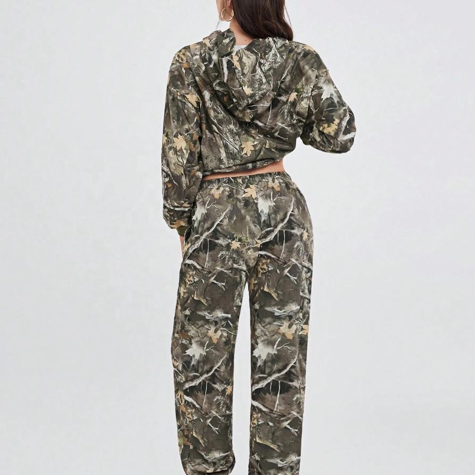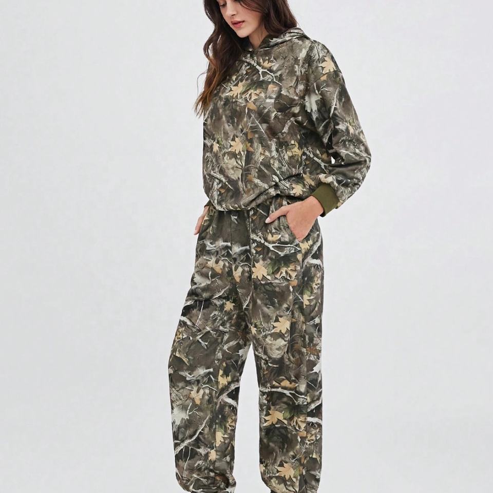 แฟชั่นใหม่มาแรงปี 2025 ชุดลายพรางสำหรับผู้หญิง ชุดลำลองพิมพ์ลายพรางทั้งตัว เสื้อฮู้ดผู้หญิง กางเกงขายาวทรงหลวม