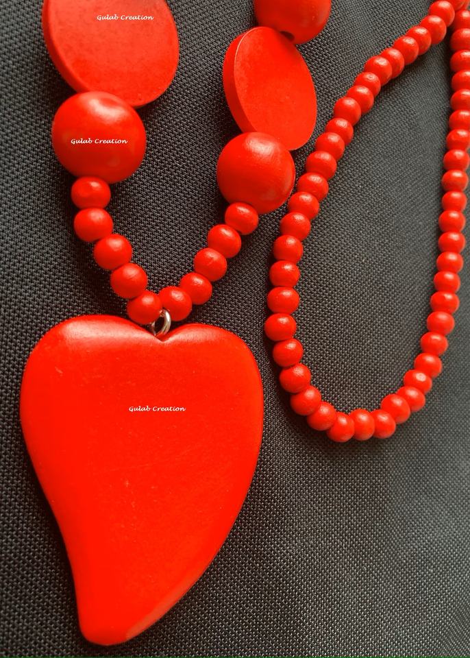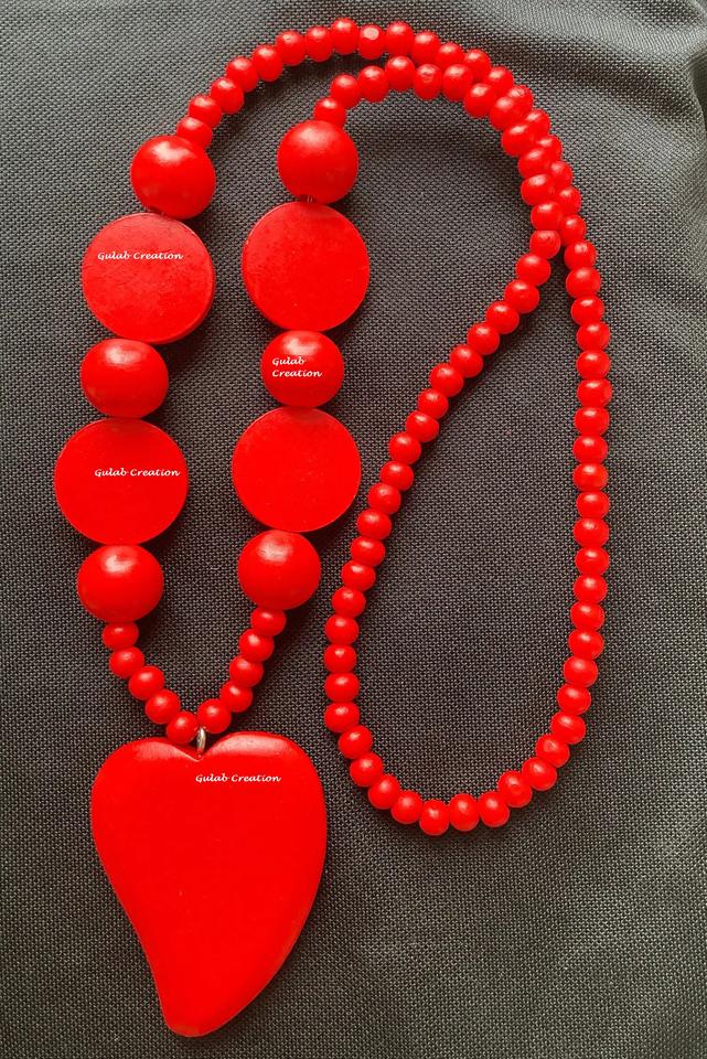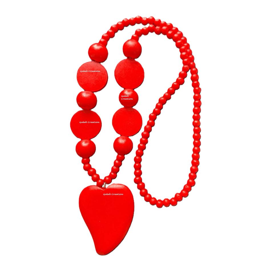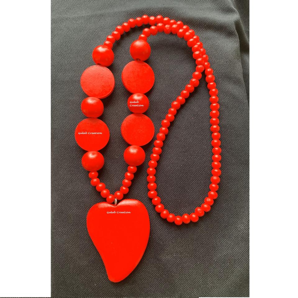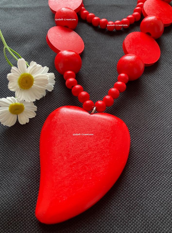 2025 New Arrival High Quality Fashion Women's Jewelry Chunky Red Wood Heart Long Statement Boho Lagen Look Necklace
