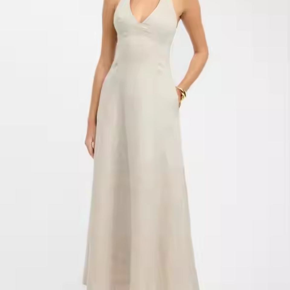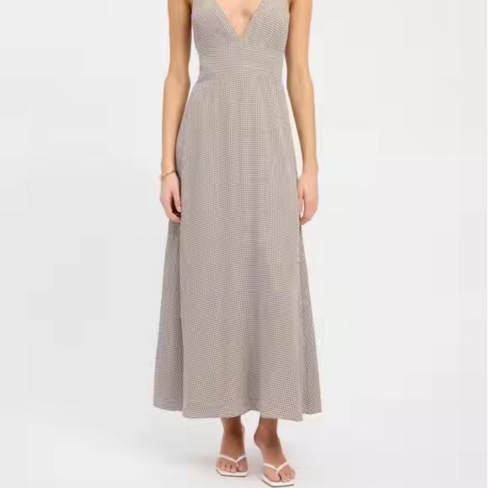 เดรสยาวลายสก็อตคอวีทรงเอไลน์สำหรับผู้หญิงรุ่นใหม่ปี 2025 ผ้าลินินลำลองเอวยางยืดทรงสูง เหมาะสำหรับฤดูใบไม้ร่วง