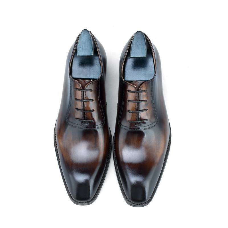 รองเท้าหนังวัวอิตาลีสีน้ำตาลและดำเพ้นท์มือสำหรับผู้ชายรุ่นใหม่ปี 2025 - เหมาะสำหรับงานแต่งงาน