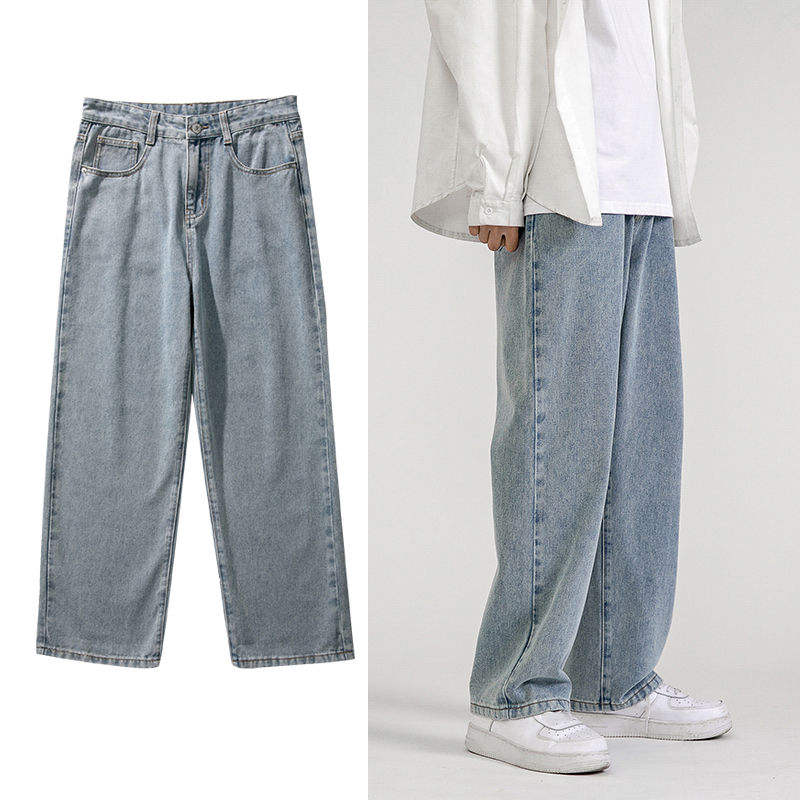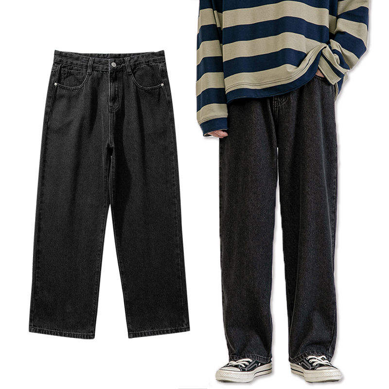 กางเกงยีนส์สโตนวอชของผู้ชาย, กางเกงยีนส์ลำลองทรงหลวมทรงหลวมใส่สบายสีเข้ม/สีล้วนมาใหม่2025