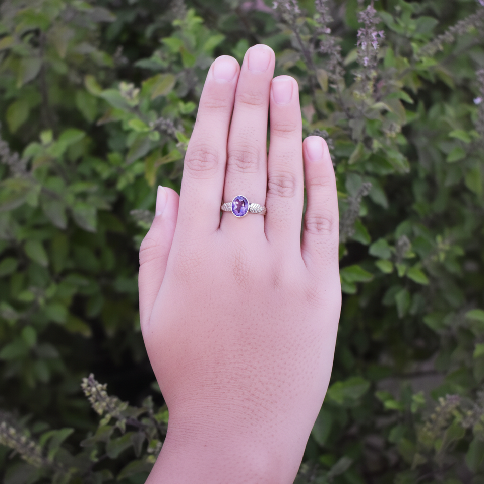 แหวนใบมีดดีไซน์แบบมินิมอล925สเตอร์ลิงพลอยอเมทิสต์ธรรมชาติสินค้าใหม่2025สำหรับงานแต่งงานแบบคลาสสิก